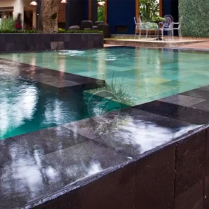 A continuación, te damos algunos ejemplos de como nuestro azulejo piedra de Bali para piscina se convierte en una auténtica estrella en el diseño del espacio, brindando un aspecto de belleza asombrosa y alta gama.